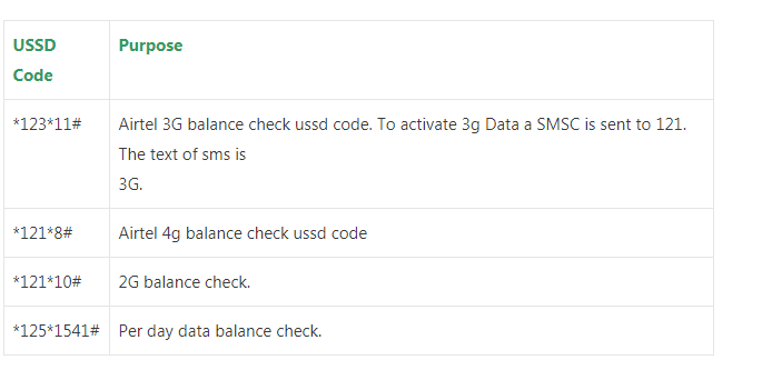Mobile data is very stable today. Airtel provides 2G, 3G, and 4G data. The data packet can be activated from USSD codes. This is important when your data package has expired and you are not getting data. The data balance can be verified from USSD and a data package can be purchased from the main balance using a USSD code. The following is the list of codes that Airtel provides for data services. Mobile data transfer is also possible with the use of USSD codes.