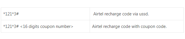 These days we have internet and smartphones in most places. Mobile subscribers can log in to the Airtel website and can be recharged through Internet banking, credit card, etc. But still, there are people who have Airtel connection in basic mobile phones. To recharge Airtel, they buy the coupon. Airtel provides the USSD code to reload from the coupon. The code is * 121 * 3 #. After dialing the code, it will request a 16-digit coupon code.