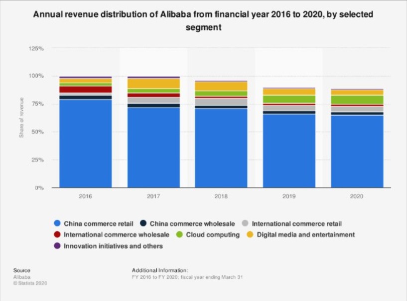 - Alibaba holds a 56% share of all retail e-commerce in China.