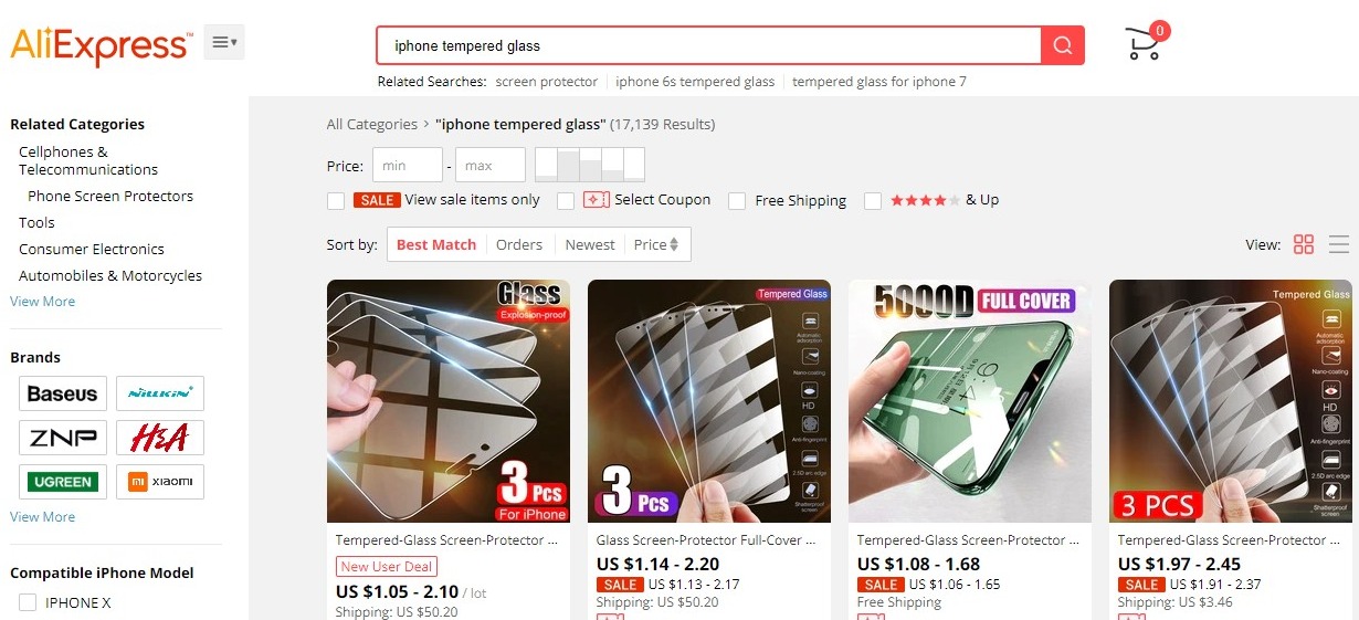 - The iPhone tempered glass is the most sold product on AliExpress. They have sold over 89,000 units.