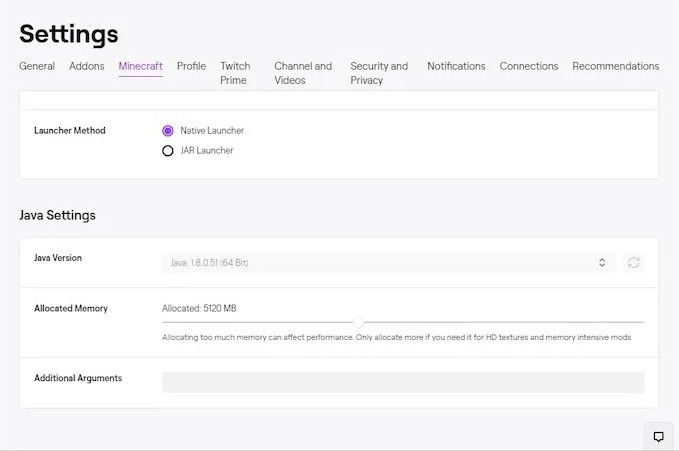 You can also allocate more RAM if you play the game via Twitch. To do that, follow these steps: