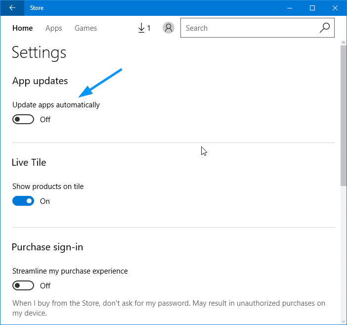- Now under the App updates section, set the Update apps automatically feature to On.