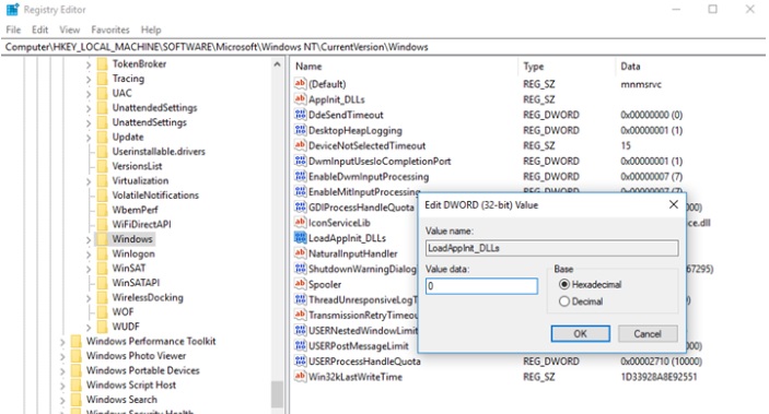 - Now take your cursor to the right side pane and double click on the LoadAppInit_DLLs value.