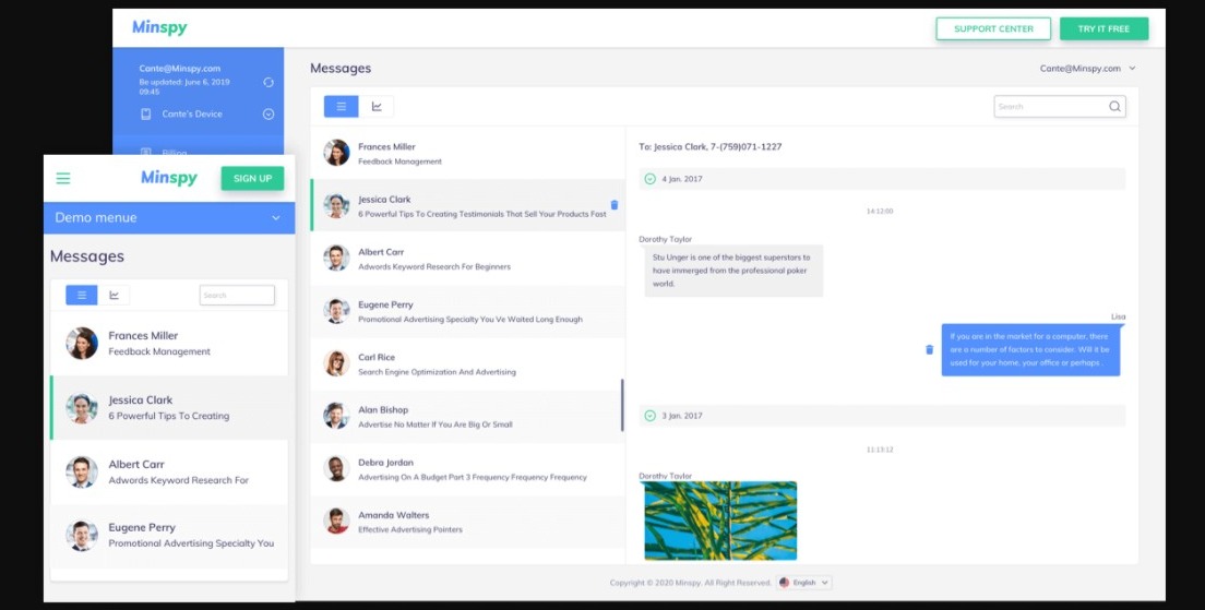 MinSpy is an amazing spying app that is very simple to use. It is available for both Android and iOS devices and works with a web-based interface. This means that you can track your partner’s activity on their smartphone directly from your browser. It comes with all the essential spying features.