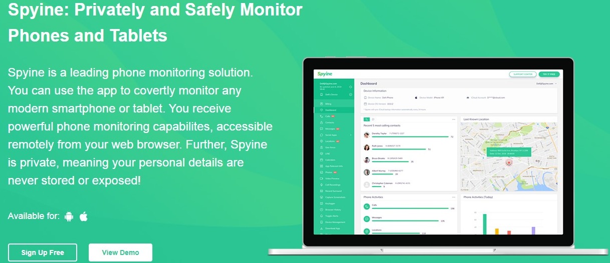 Spyine is one more great smartphone monitoring and spying app available for Android as well as iOS users. This app lets you track your partner’s location in real time, read their messages, listen to their calls, and access their social media apps. All this is done remotely and privately.