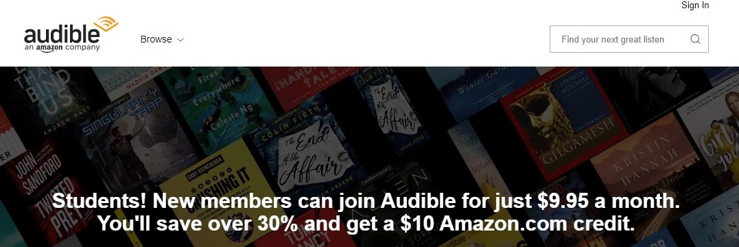 The Audible Student Discount works as a tremendous relief for students. Currently, it allows the students to buy the Audible subscription at a discount of 30%. Along with this, students will also get a $10 Amazon credit that you can use to buy any product sold by Amazon.com.