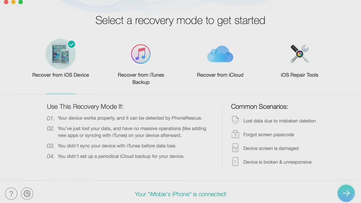 iMobie PhoneRescue is one of the oldest and great iPhone recovery software. This tool is able to recover over 30 types of data like your messages, notes, photos, videos, etc. You can also recover WhatsApp messages and call logs with this. One very useful feature of this tool is its iOS repair feature that lets you solve multiple problems such as the iPhone stuck at Apple log, update failure, black screen stuck while booting, etc.