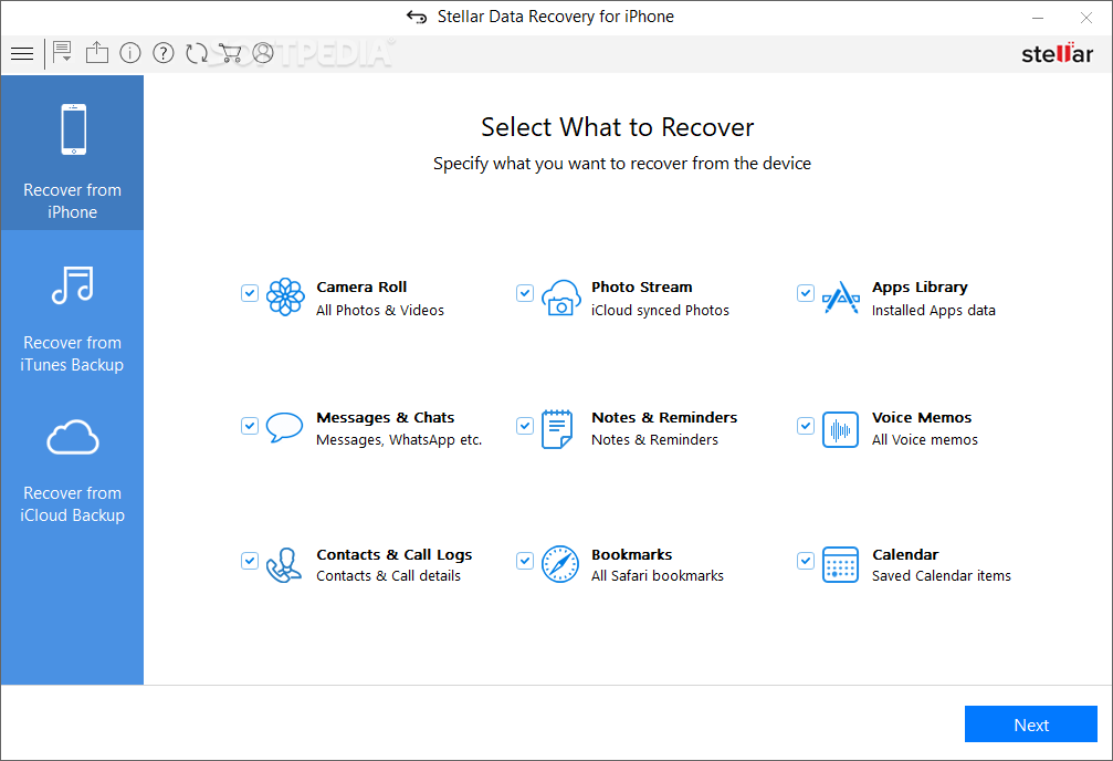 Stellar Phoenix Data Recovery for iPhone is a brilliant tool to recover your lost data. You can use it to restore data from your iOS devices, iCloud backup, and iTunes. One notable ability of this tool is that it can recover photos from Camera Roll and Photo Stream. You can even recover WhatsApp messages and attachments. It is well-known among the users for its fast scan for recoverable files.