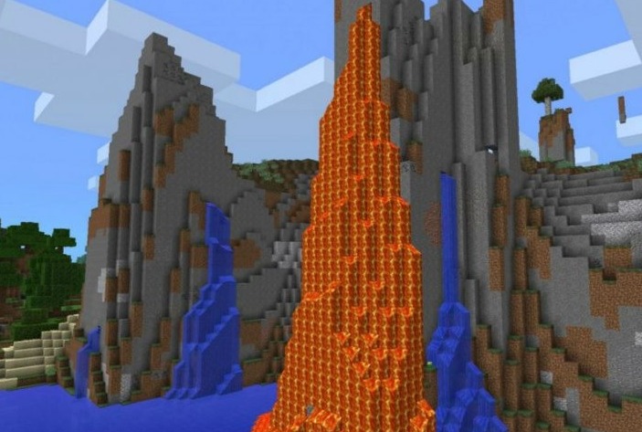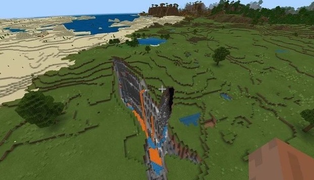 When you spawn yourself near the lava cliffs, it is going to be a tremendous adventure for you while going through a visual treat. This seed allows you to do that. It helps you to spawn near the cliff face where lava is flowing just like a waterfall flows. You have to do a little digging near the spawn point to find an abandoned mineshaft.