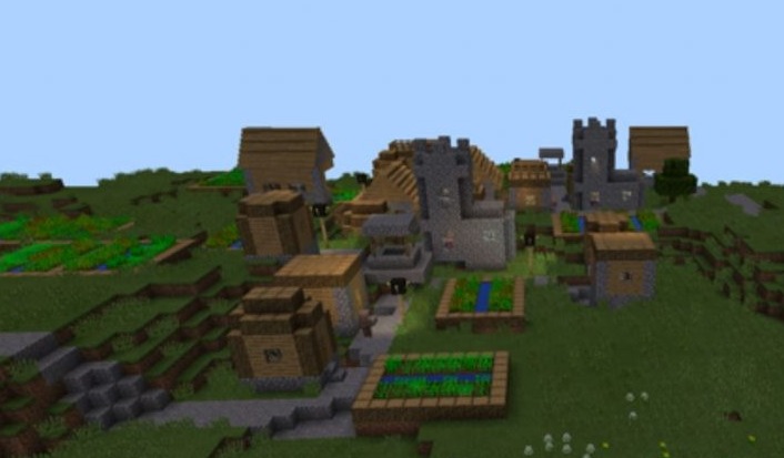 Spawning in a village is normal but spawning in a small town completely created by the game itself is amusing. You can use this seed to do that. It helps you to start building in a bonafide town built up by combining three villages. You’ll definitely enjoy being there.