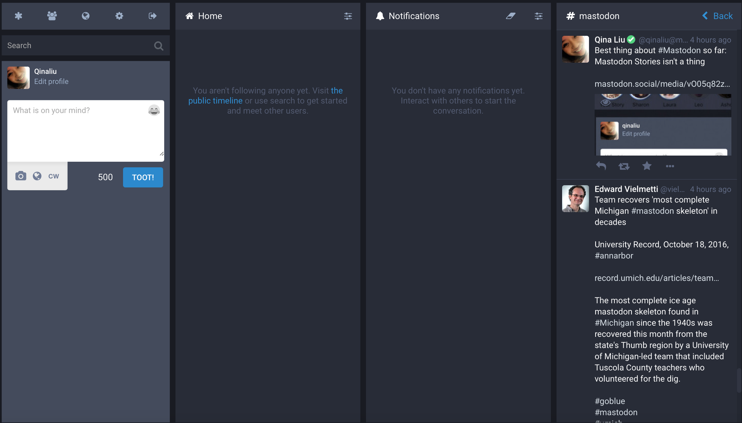 Mastodon is quite similar to other microblogging sites like Twitter. The User interface of the platform is almost like the design of Twitter’s Tweetdeck, with the segmented windows. Users can post up to 500 characters, which are called “toots” which other users can “boost”. Mastodon has a flexible approach to adult content.