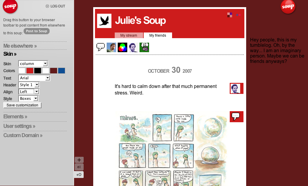Soup is a microblogging and social networking site from Austria. The platform allows users to upload reviews, quotes, links, videos, images, and text. Soup.io is famous for its simplicity and ease of use. Soup.io lets users to easily aggregate activities from popular social websites and blogs. The website amazing features include infinite content scrolling and re-posting of contents from other users on the platform.