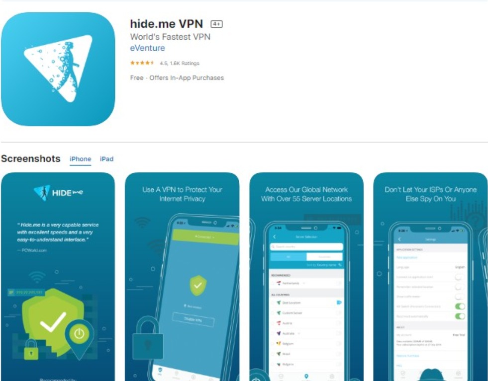 Hide.me is an impressive VPN for iPhone that has an average rating of 4.6 stars on the App Store. This app comes in a free and a paid version. The free version offers 2GB of data per month. This app provides military-grade encryption, kill switch, and IP leak protection to keep you protected at all times. It also has a built-in ad-blocker that will keep you safe from adware. The free version of the app provides 2GB of data per month and a fast connection to servers from five countries.