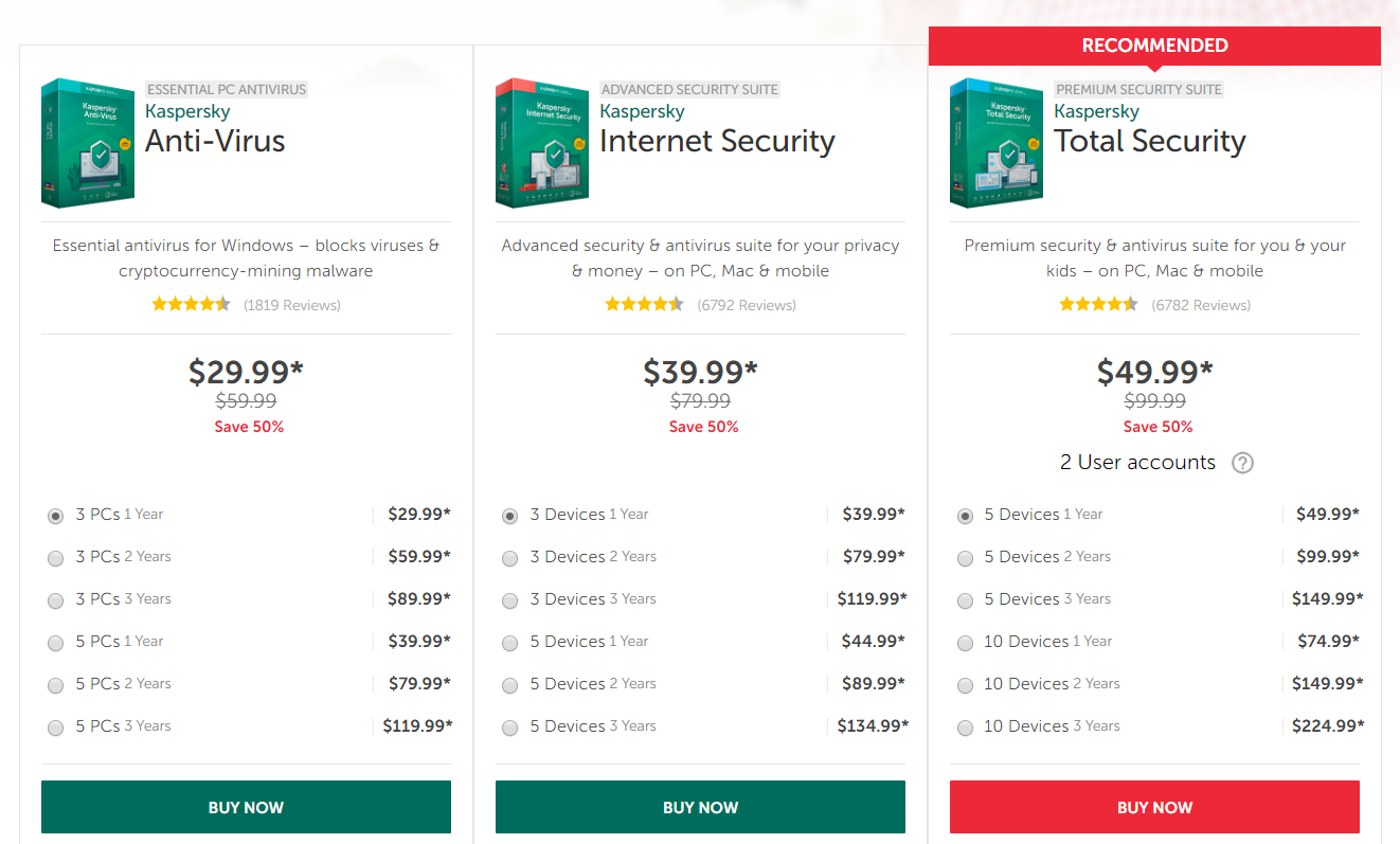 Both Bitdefender & Kaspersky offer different pricing terms & products & therefore, comparing them at once is super complicated. I will be projecting their software programs & pricing models in different sections. Both the mentioned IT security software offers a free trial, which is great for the people confused with their purchase. Let us have a closer look at the pricing model of Bitdefender & Kaspersky.
