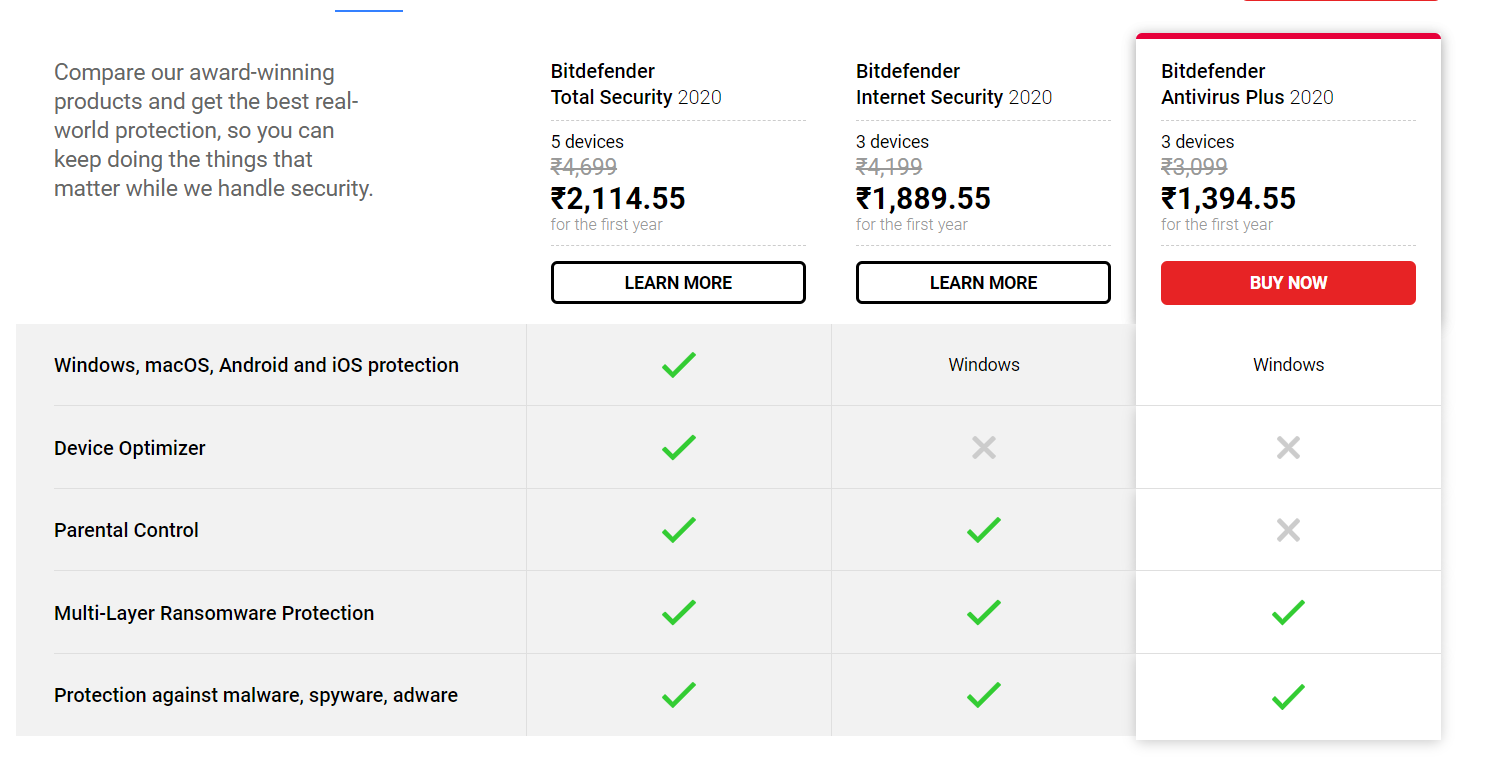 Bitdefender recently launched a small office security plan that costs $100 and covers 10 devices for a whole year. It is specially designed for new start-up businesses to ensure the safety of their projects. Apart from Bitdefender Antivirus Plus, there are a lot more products that ensure safety on the internet & from the harmful attacks. If you want a detailed overview of the products & services of Bitdefender, then click here.