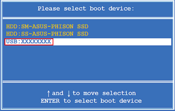 Step 3: Now, press the buttons, ↑ or ↓ key to choose your USB drive. Then, press Enter.