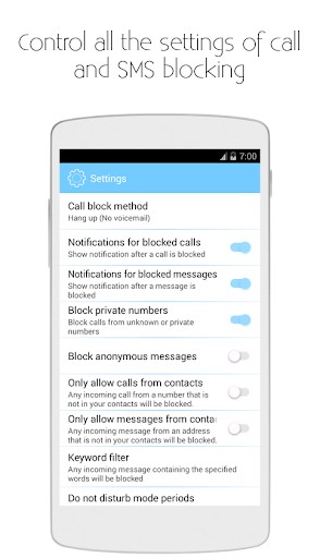 Call Blocker is an app that can help you block all the calls that you deem unwanted. The features of this app are blocking calls in the blacklist, log of blocked numbers, notifications about the blocked numbers, blocking spams and telemarketing calls, etc. This app is lite and easy to operate.