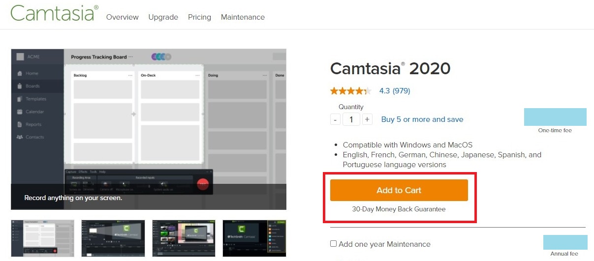 This means you can get Camtasia Individual package for just $187.5, instead of the regular price of $249.99. You can also upgrade your outdated Camtasia to Camtasia 2020 only for $105, instead of the regular price of $139.99. This is a tremendous deal if you have been planning to buy this impressive screen-recording utility.