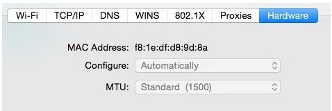 The System Preferences pane of Mac OS X shows the MAC address of each network interface.