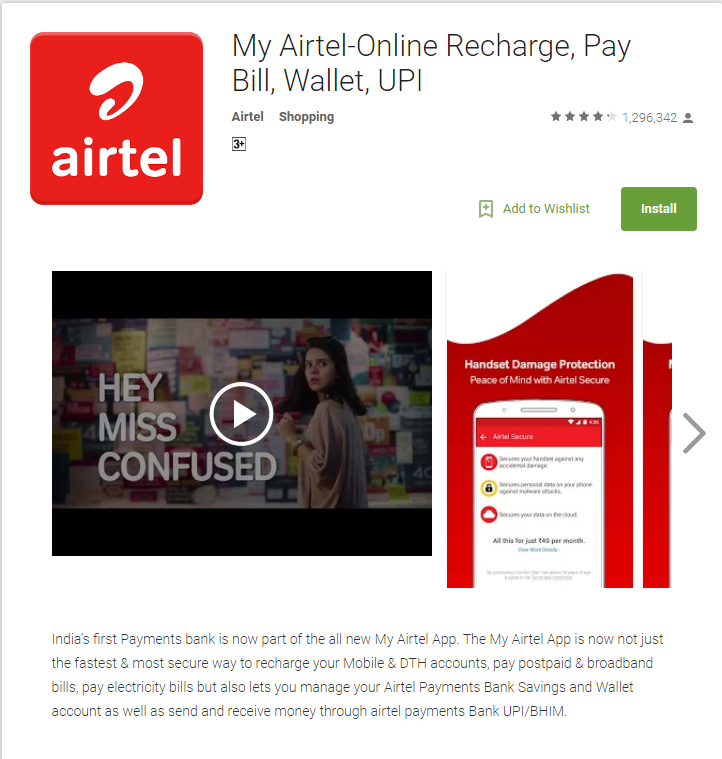 - You will find the Airtel Thanks app, tap on the download button and click install.