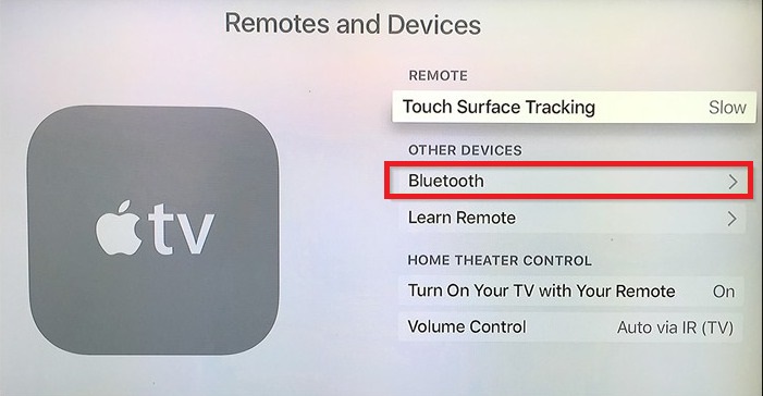 Step-1: Turn on your Apple TV and go to Settings. Now go to ‘Remotes and Devices‘ and then click on ‘Bluetooth.’ Turn the Bluetooth toggle switch on if it is turned off.