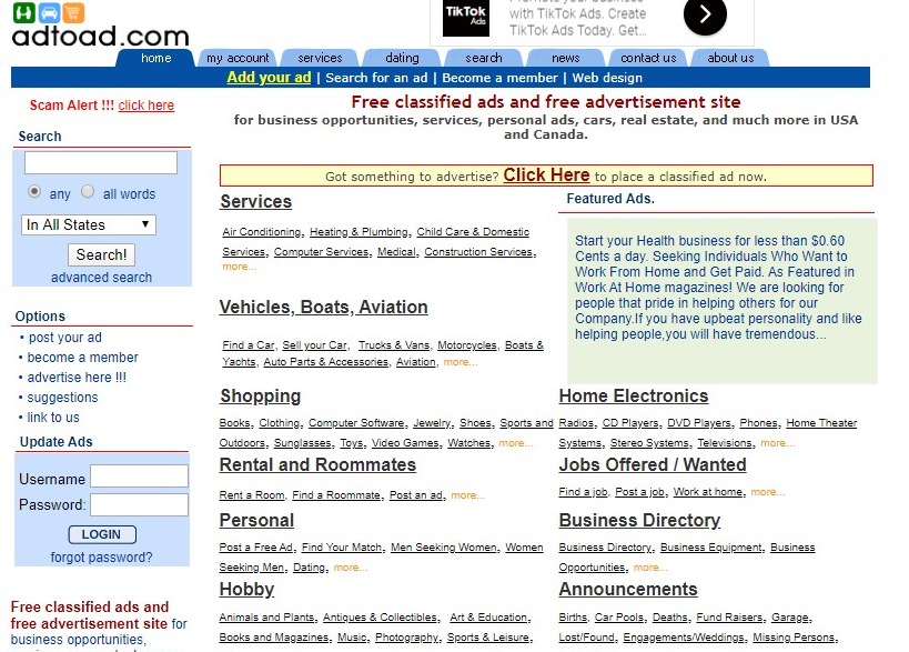 Ad-to-Ad is another classified advertisements website that has the potential to be the perfect alternative to Craigslist. You can use it to sell anything from houses to vehicles, or pets, clothes, housing goods, services or any other things. Also, you can buy used, refurbished, or new things that you have been wanting for a long time. It also has a Jet category where you can find ads for planes, and a Boat category where you can buy or sell boats.