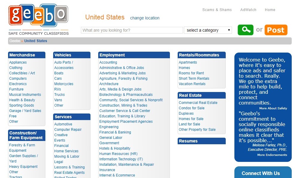 Geebo is another classified advertisement website that has been offering its services for a very long time. It was founded in 2020 and has been an active platform for people to buy or sell things. You can post ads in various categories on this website like Real Estate, Vehicles, Pets, Jobs, Kitchenware, and many others. It is one of the most used alternatives that gained massive success after Craigslist shut down the personal section.
