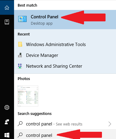 Step 1: Find the search box on the taskbar. Type in control panel.