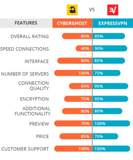 The value price of both Cyberghost & ExpressVPN differs by a small margin. If you are a budget consumer and purchase for the long term, then Cyberghost might be good for you. But if you are a quality-oriented consumer, then ExpressVPN is perfect for you.