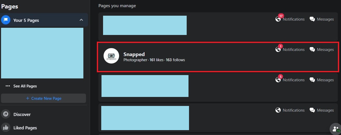 Step-2: Here, click on the page you want to delete under the ‘Pages you manage’ section.