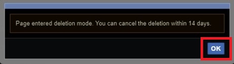 Step-7: Finally, when you get the ‘Page entered deletion mode’ prompt on the screen, click on ‘OK’ to complete the procedure.