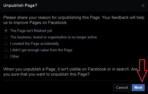 Step-5: Facebook will ask you for a reason for publishing the page. Choose any reason and click on ‘Next.’