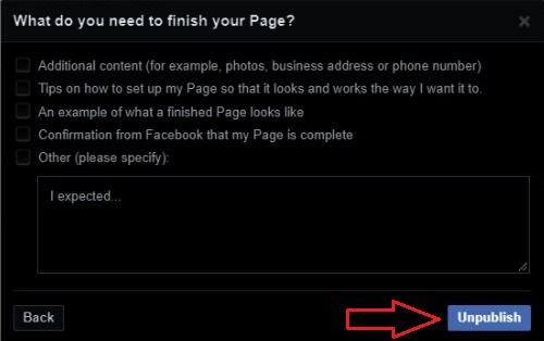 Step-6: Based on the reason you choose, Facebook will present you with certain options. Choose the most suitable one and then click on ‘Unpublish.’