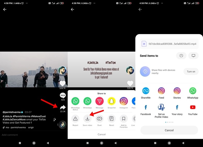 That’s it. The TikTok video is now saved on your smartphone. You can watch it whenever you want without needing the internet, or you can share it with your friends on WhatsApp or Messenger.