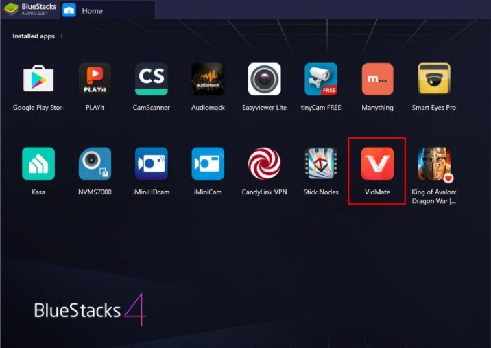 Step-7: When the Vidmate app is installed, you will see its icon on the BlueStacks home screen. Double-click on it to launch it.