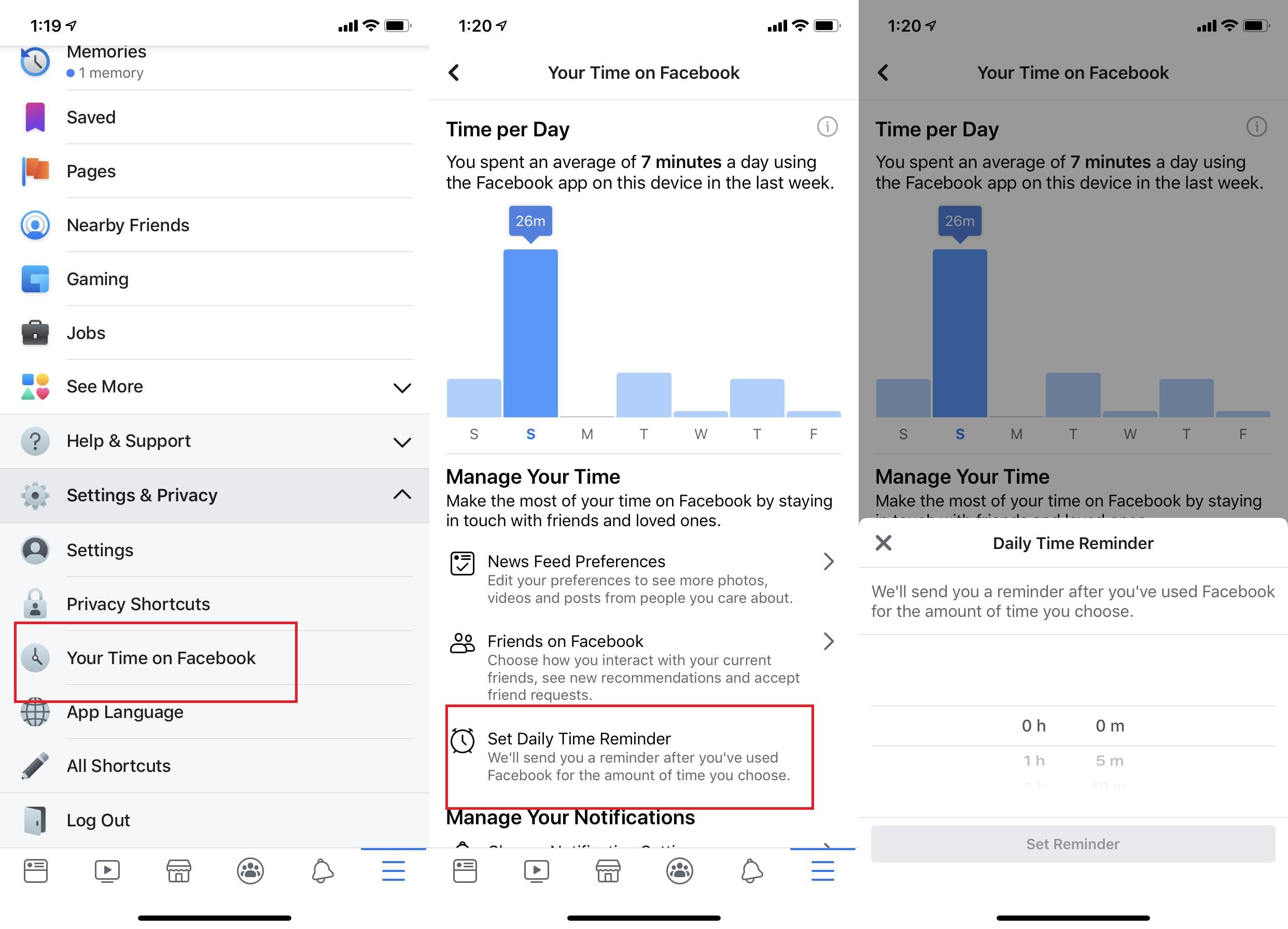 You can also manage this time by setting a daily reminder. Facebook will then remind you to not use it too much.