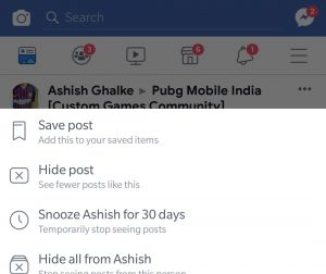 If you have friends in your list that post way too many posts and pictures, and literally spam your news feed, then you can simply mute them for whatever duration you like. Just tap on the ‘three-dots‘ present on the top-right corner of that person’s post and from here you can either select to Hide the posts or Snooze the person. This is a good way to curate your news feed.
