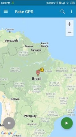 Step-3: Now come back to the Fake GPS app and move the Pin-Pointer to any location of your choice. After placing the marker, tap on the green play button on the bottom right corner.