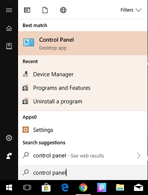 - Firstly, press the Windows key and type in “Control Panel“. Tap open it.