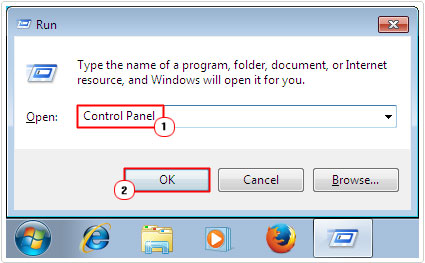 2. Then press the Windows + R key, type Control Panel and click OK.