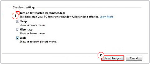 6. Finally, in Power off settings, uncheck the box next to Enable quick start and click Save changes.