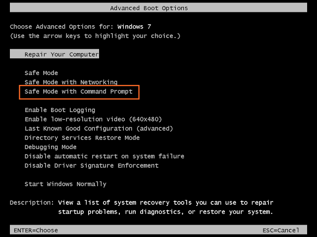 Step 2: Select Safe mode with Command Prompt from the Repair your Computer tab list.
