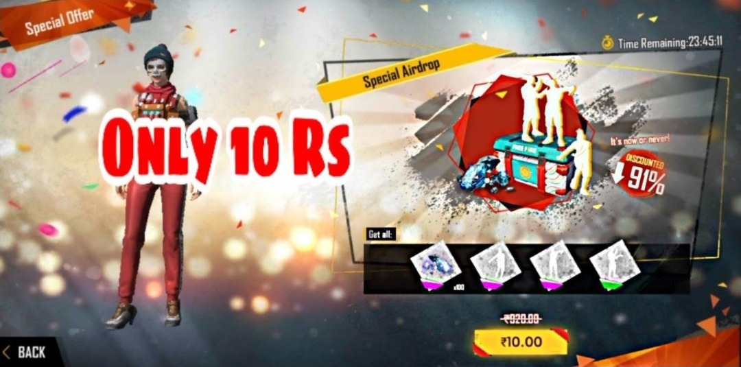 This is NOT a free method but you can get Diamonds at a very cheap price by using this method. Free Fire players occasionally receive Special Air Drops in the game where they can buy Diamonds worth over $10 for less than half a dollar. I once bought Diamonds worth INR 300 for INR 30 though a Special AirDrop that had a 90% discount.