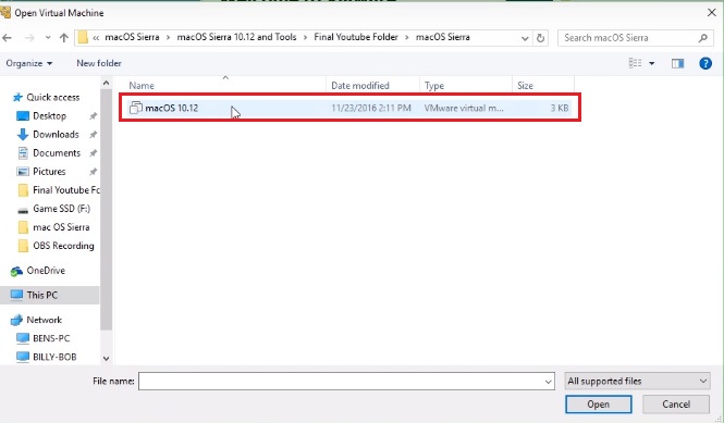 - In the pop-up window, navigate to the following pathway: Sierra > macOS Sierra 10.12 tools > Final Youtube Folder > macOS Sierra folder and choose the OS.