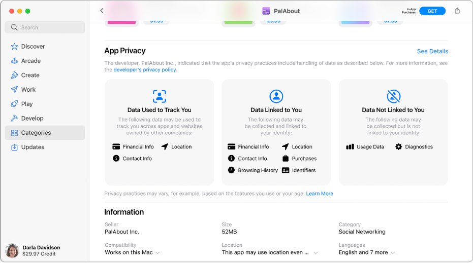 Note: If your Apple ID is not linked to the AppStore, you will see a Sign in button. Click on it and provide your account credentials to sign in.
