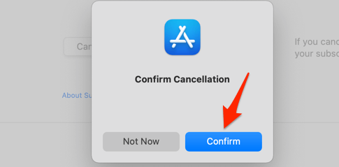 - Tap on the Cancel Subscription button and then Confirm the operation on the Confirmation prompt.