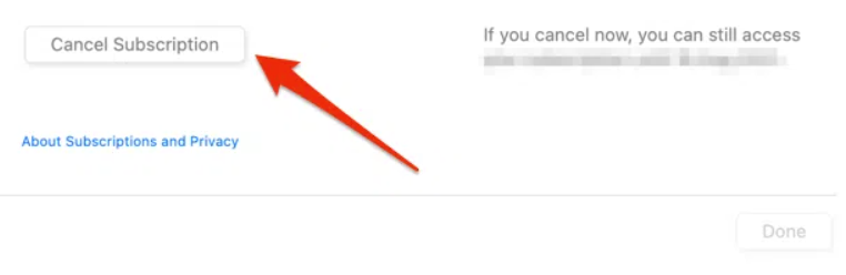 - Next, scroll through the details of the subscription and click on Cancel Subscription.