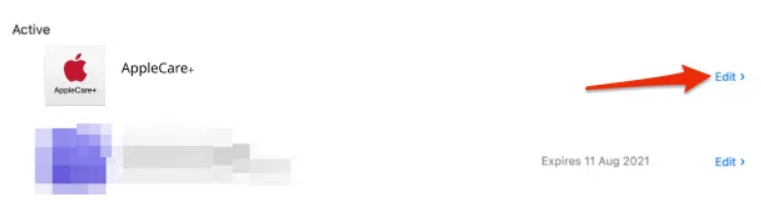 - Next, click on the Manage tab, and from the list of all the active subscription plans search for AppleCare.