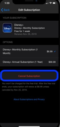 Step-5: Finally, tap on Cancel Subscription, and confirm your selection.