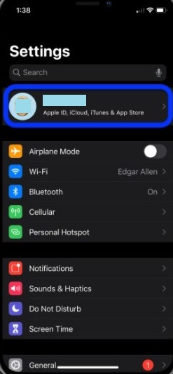 Step-2: Now tap on your name present at the top (For older iOS users, it is available at the bottom).